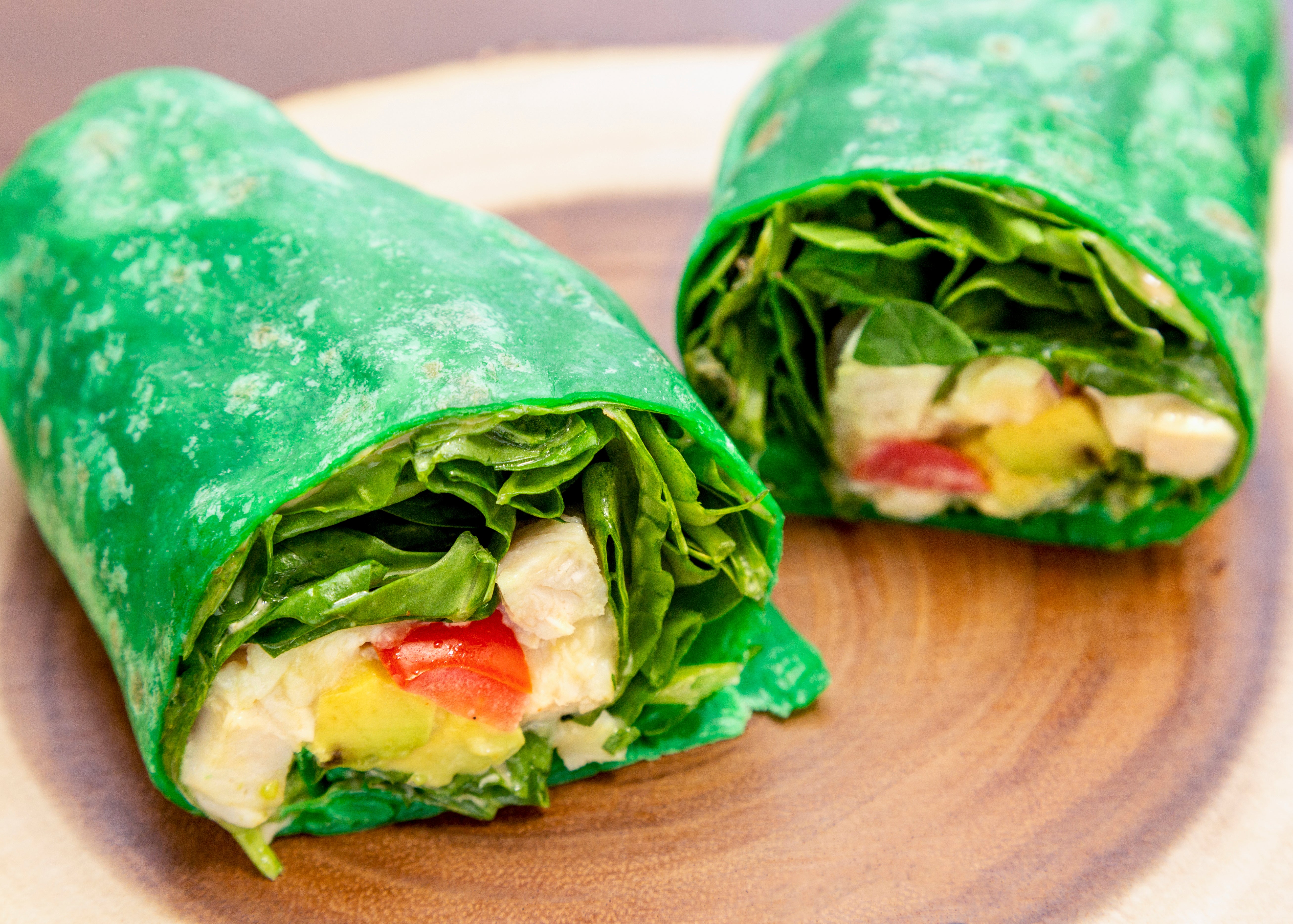 Tomato wrap, pesto, spinach, chicken, mozzarella, tomato, and house sauce